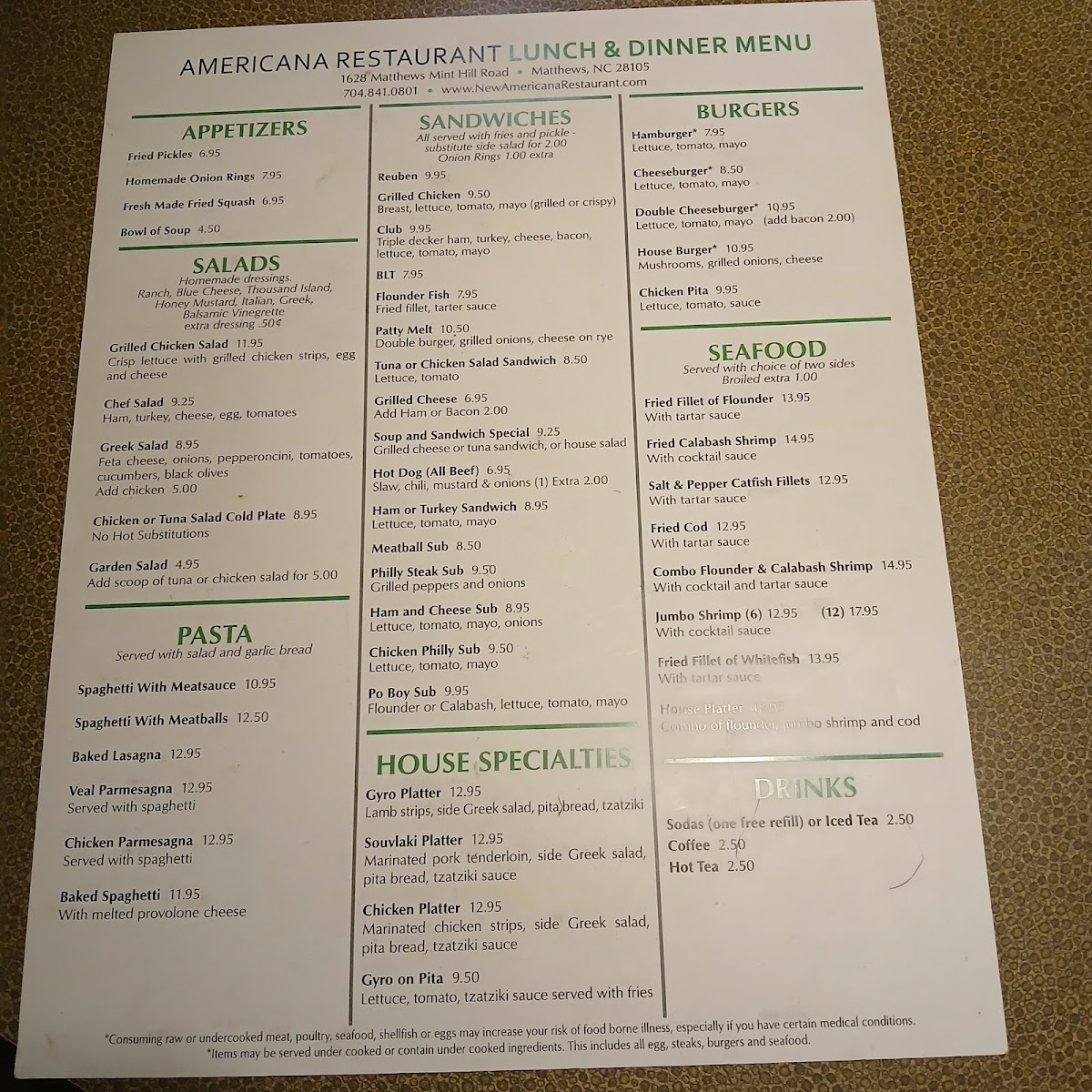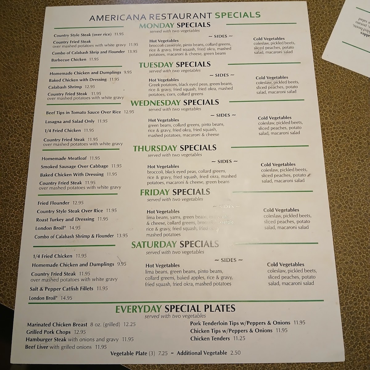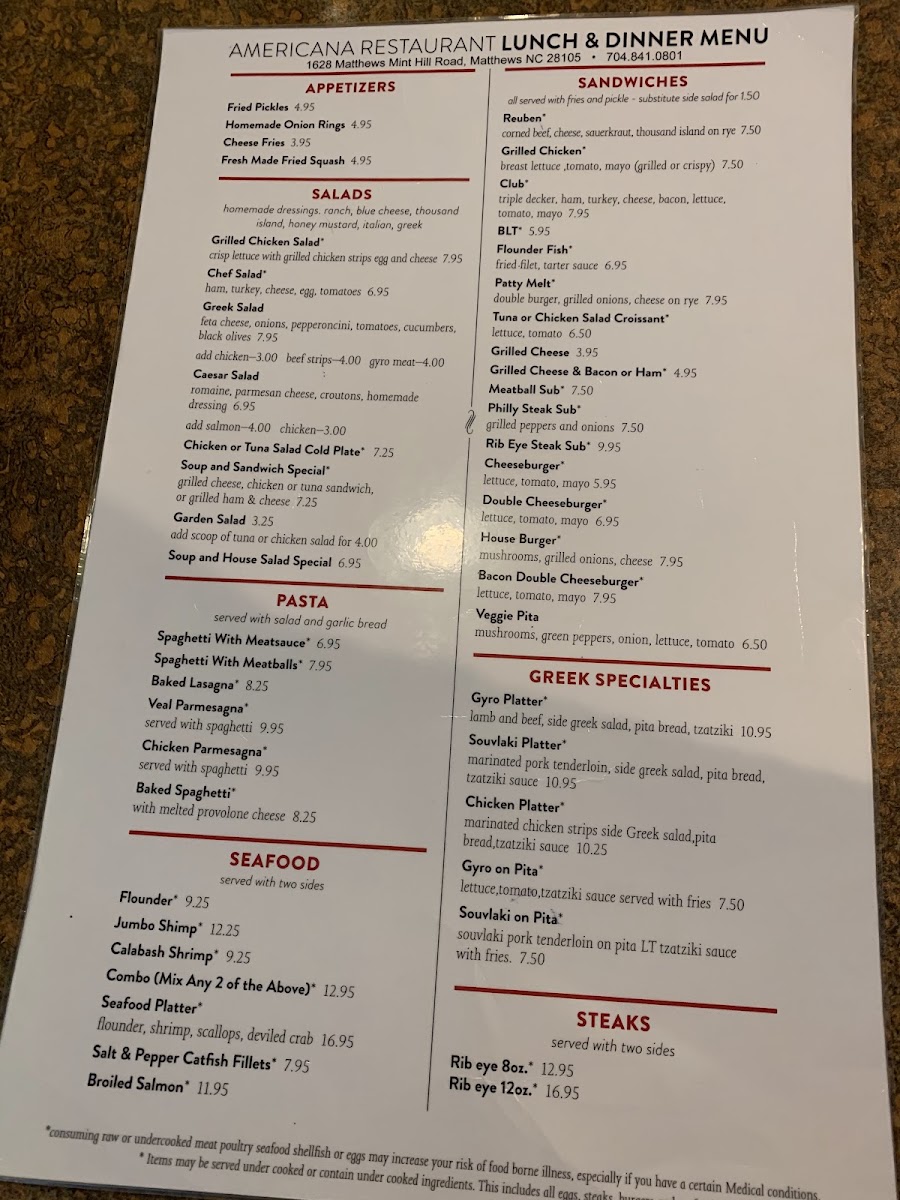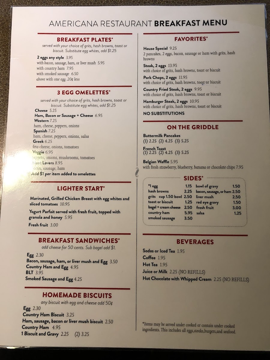 Americana Restaurant Menu