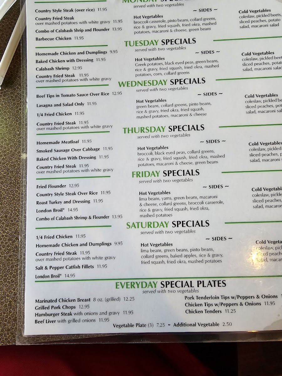 Alongside these classics, lighter choices like fresh salads and house soups provide simple, balanced options in a setting designed for relaxed, easygoing dining. Rich sides like mac and cheese, collard greens, and fried okra complement the meals, adding that familiar Southern touch. Whether you’re stopping in for a casual breakfast, a filling midday meal, or a cozy dinner, the menu’s familiar flavors fit well with Americana’s warm, unpretentious atmosphere.